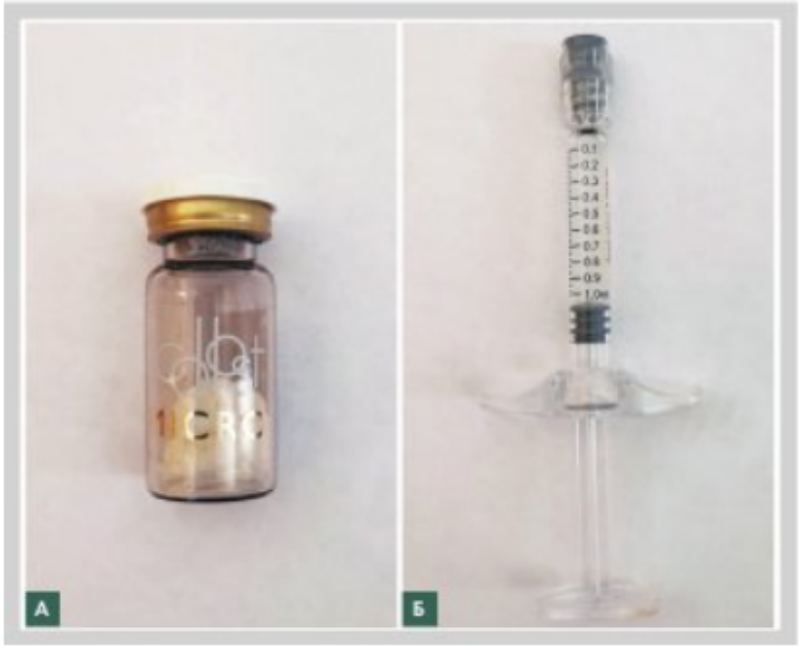 Fig. 1. Trial medicinal products in primary packaging: “Intradermal collagen-based implant COLLOST® micro” (А) and “Intradermal collagen-based implant COLLOST® intense” (Б)