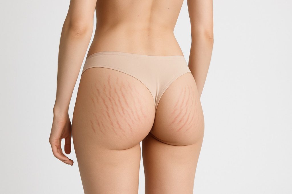 The appearance of stretch marks is most often associated with physical stress. However, sometimes the buttocks also suffer from striae of endocrine origin. The causes of stretch marks may also lie in hereditary predisposition.