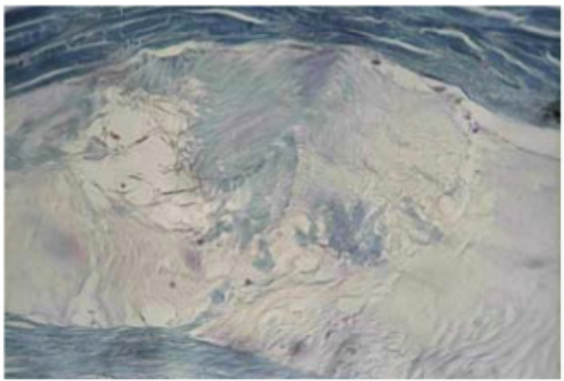 Photo 2. Three weeks after implantation: stromal cells around the implant and cell incorporation into the implant (photo courtesy of Biopharmholding CJSC)