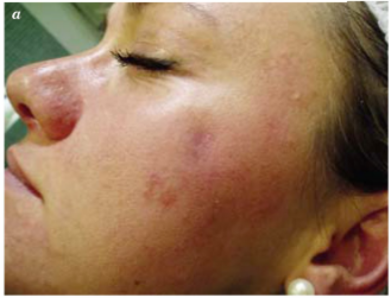 When correcting cicatricial deformities in the perioral area, moderate swelling may be observed, which completely regresses within 3–5 days. All side effects are localized strictly in the area of the product administration, completely regress within 1–2 days after injection and do not require additional drug therapy. But if necessary, we can recommend using gels Traumeel, Troxevasin, Lyoton, etc. Ecchymosis is also possible, especially when correcting atrophic deformities of the skin of the face and neck. To speed up the resorption of hemorrhages, it is recommended to apply hepatrombin ointment or Lioton gel, Arnica cream, Spasatel (Rescuer) balm, creams with vitamin K, etc 2-4 times a day.